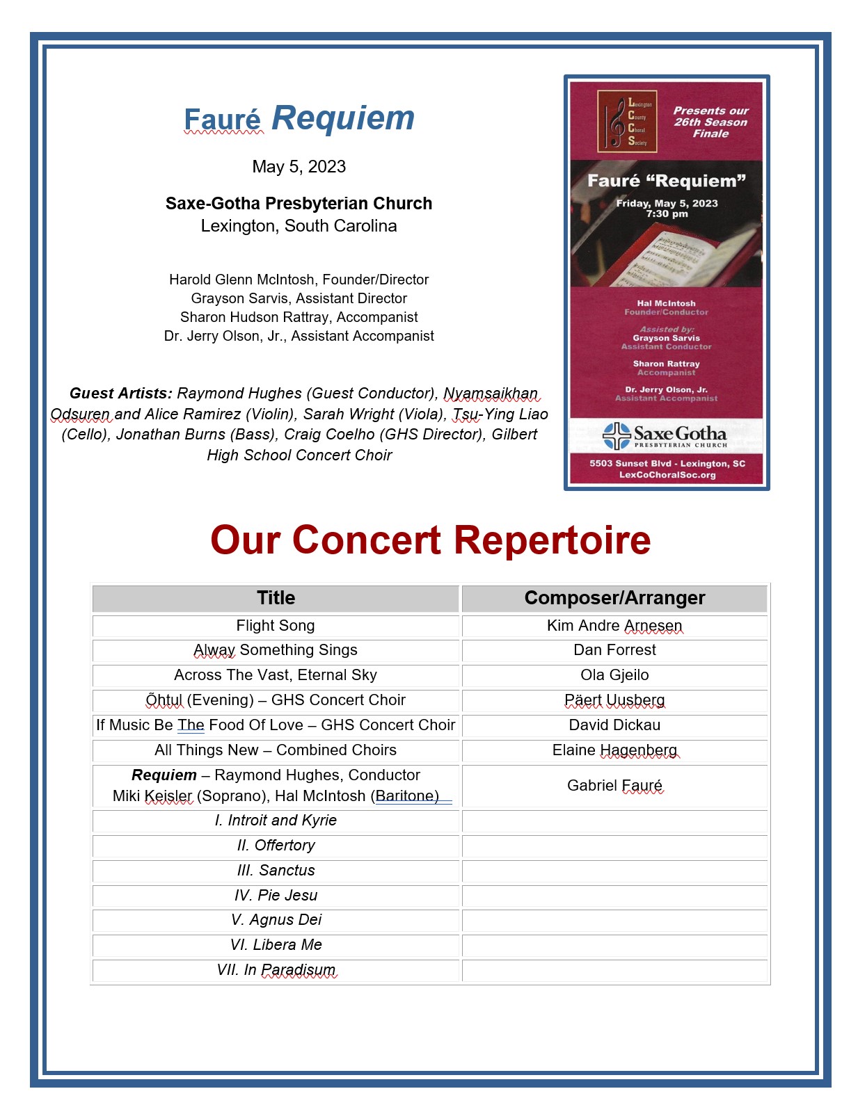 Please click on the underlined links below below to view concert repertoire and information.